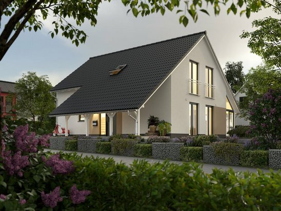 Mit dem Haus des Monats können Sie sich über das beliebte Satteldach, eine großzügige Raumgestaltung und einen flexiblen Grundriss freuen. Unser Bodensee 129 lädt Familien auf rund 128 Quadratmetern zum Wohlfühlen ein.